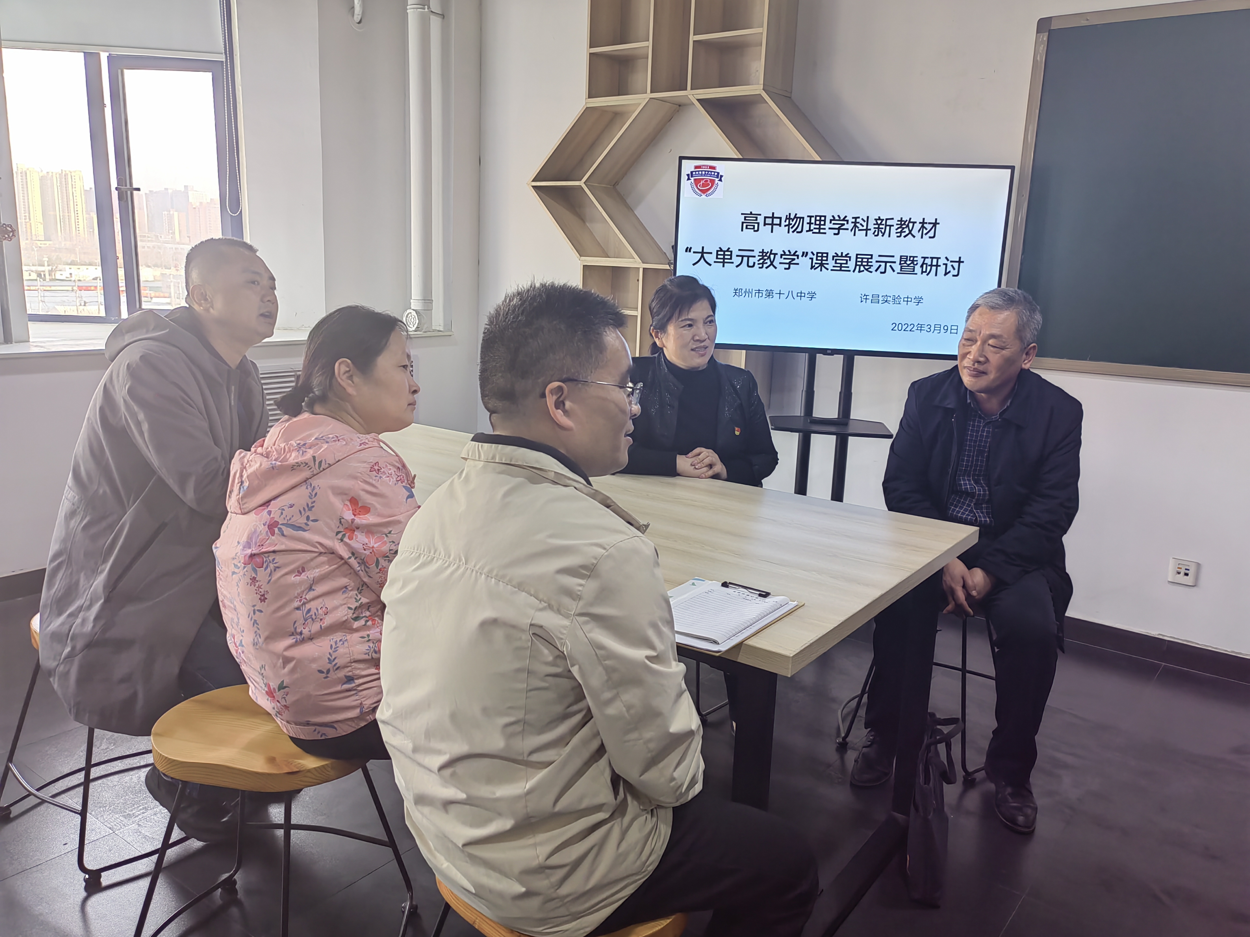 3月9日下午,基于大单元教学课程的教育改革背景下,郑州18中和许昌实验中学举行了一次同课异构活动,本次活动以线上观摩研讨的方式进行。中原名师高中物理工作室主持人司德平、郑州市高中物理名师工作室主持人王庆灿、高中物理中原名师培育对象赵伏莲、“6+1”联盟成员校物理学科组教师应邀参加本次活动。