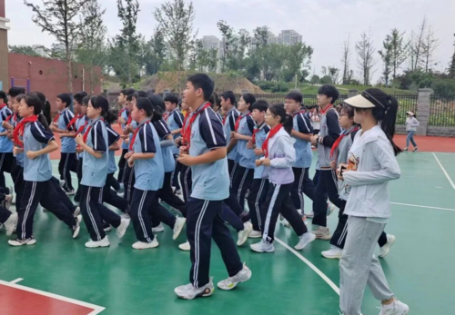 陈佳佳和学生一起跑操