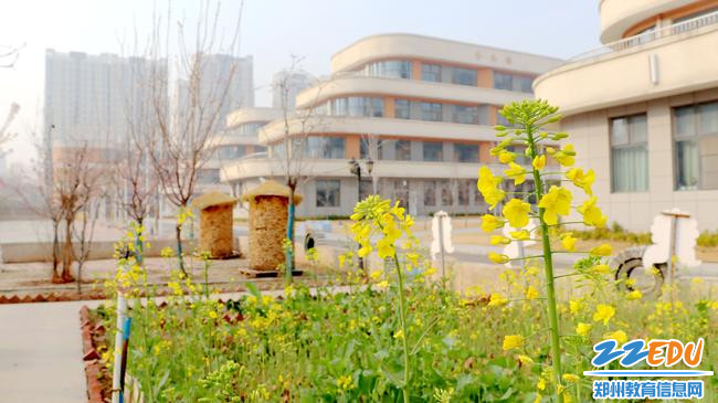 巩义市嵩山路小学的校园里,春色是生动的,明媚的:油菜花、桃花、梨花,一方校园已是满园春色;远处少年们在春光中感受着运动的快乐,蓬勃向上。