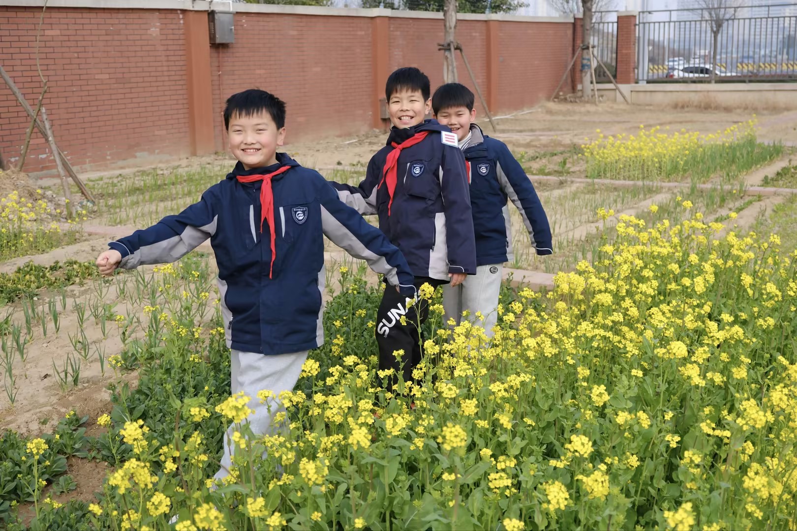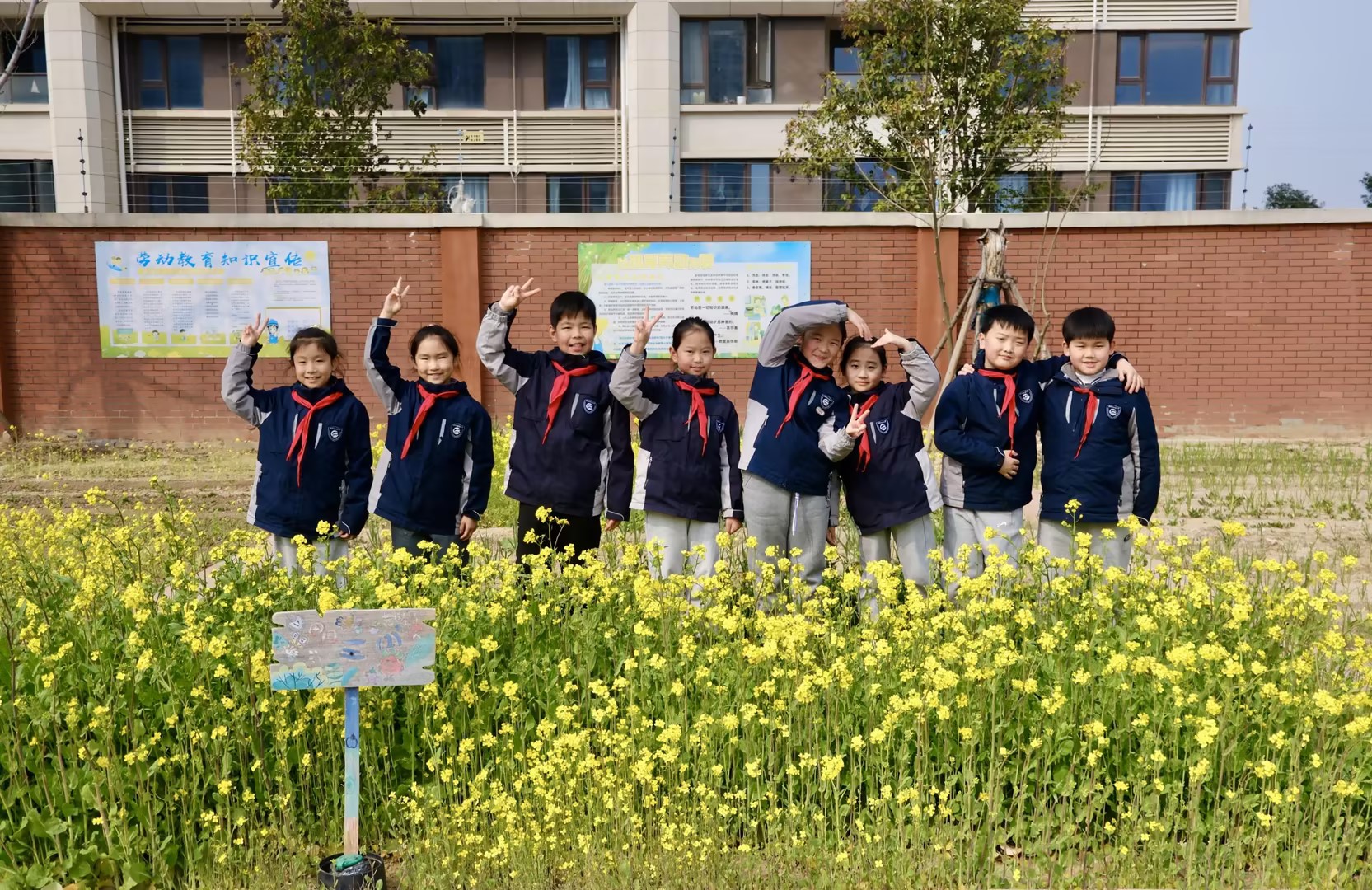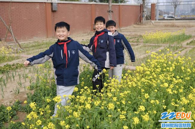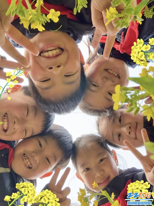 当春风吹暖了郑州外国语小学的校园,油菜花便铺成金色的海洋,粉白的桃花缀满了枝头,系着红领巾的少年们在花田里笑着、闹着、树下捧读,把春天的明媚和童年的欢喜,都藏进了这幅温暖的画面里。