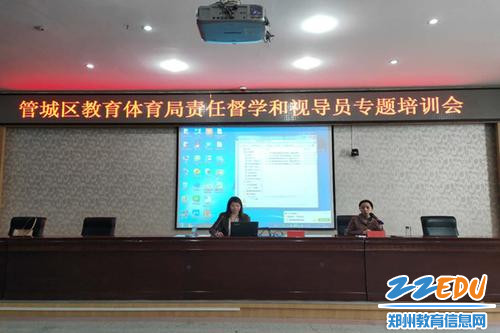 管城区督导室副主任崔淑云讲解“郑州市责任督学挂牌督导工作平台”操作步骤