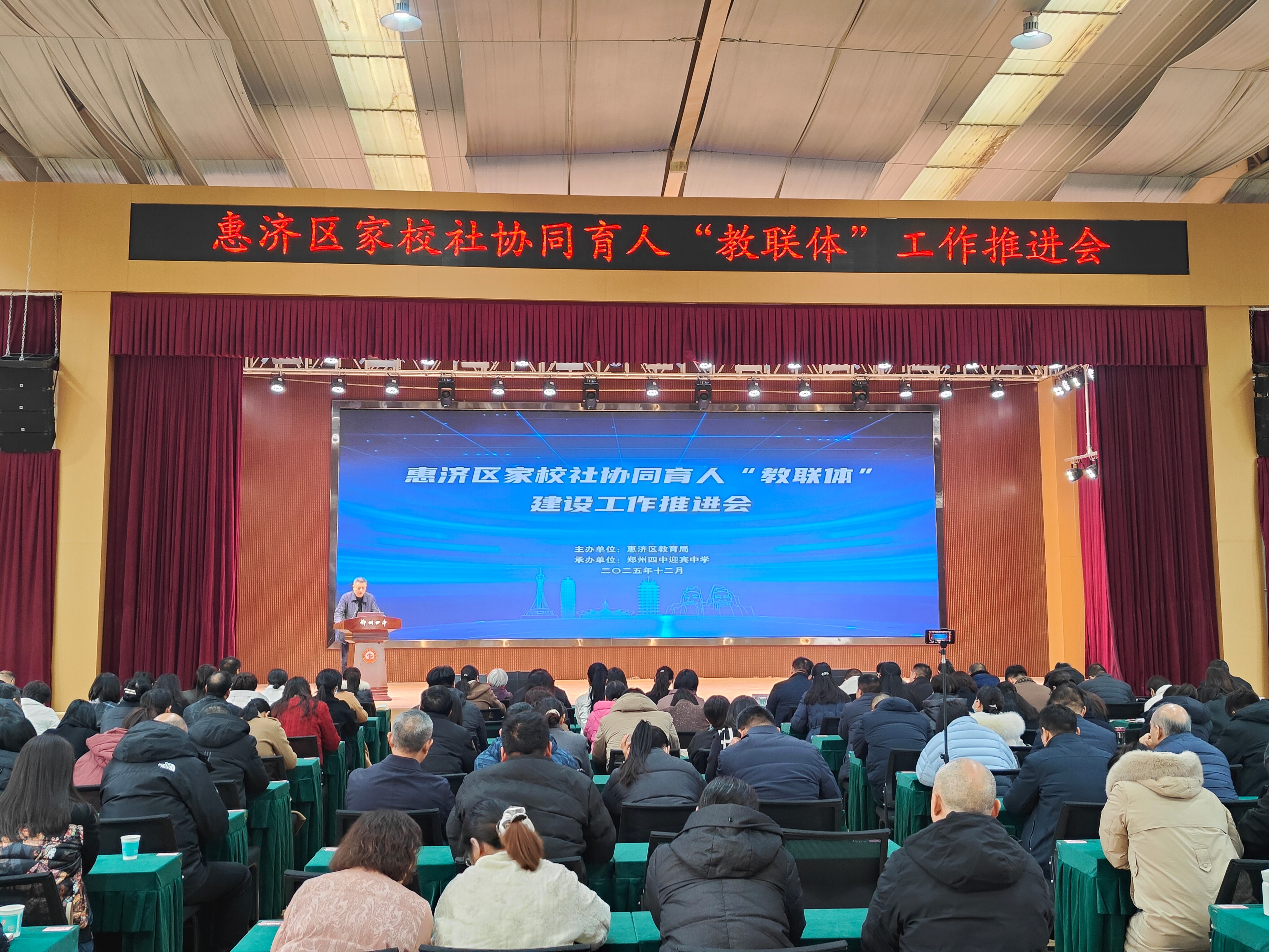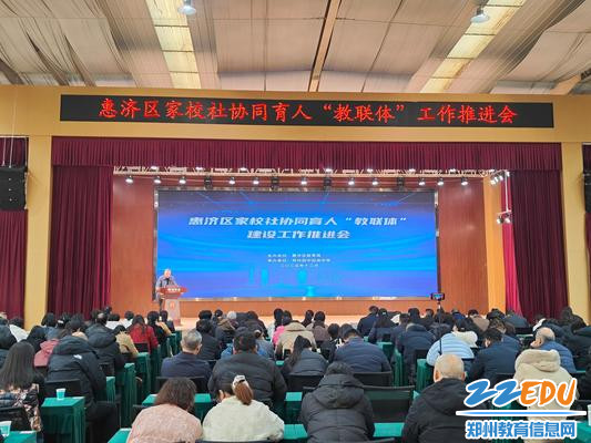 12月17日,惠济区教育局联合区委宣传部等14个部门,在郑州四中迎宾中学召开惠济区家校社协同育人“教联体”建设工作推进会,全面开启区域协同育人新篇章。惠济区委宣传部、郑州市公安局惠济分局等14部门分管负责人,各镇(街道)分管负责人,全区中小学、幼儿园校(园)长等200余人参会。会议由惠济区教育局党组成员、副局长崔永丽主持。