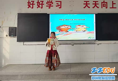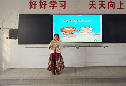 三、四年级的展示注重语言基础与兴趣培养。学生们首先完成课文朗读,语音语调清晰自然;在自备绘本故事环节,选手们用生动活泼的语言进行复述,情节完整,富有童趣;最后的现场抽取绘本朗读环节,学生需在准备3分钟后进行展示,有效考验了其即时认读与语音适应能力。四年级学生还增加了评委现场问答,学生们能听懂问题并积极回应,展现了初步的语言交际能力。