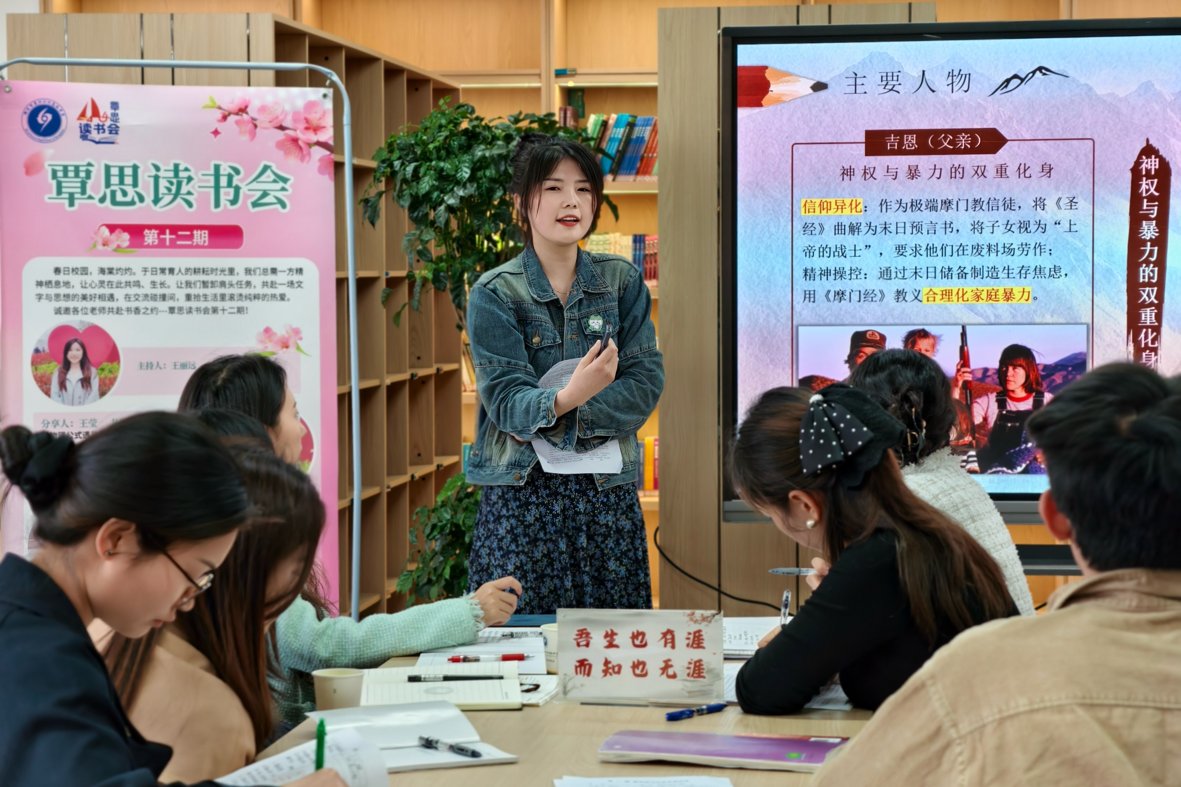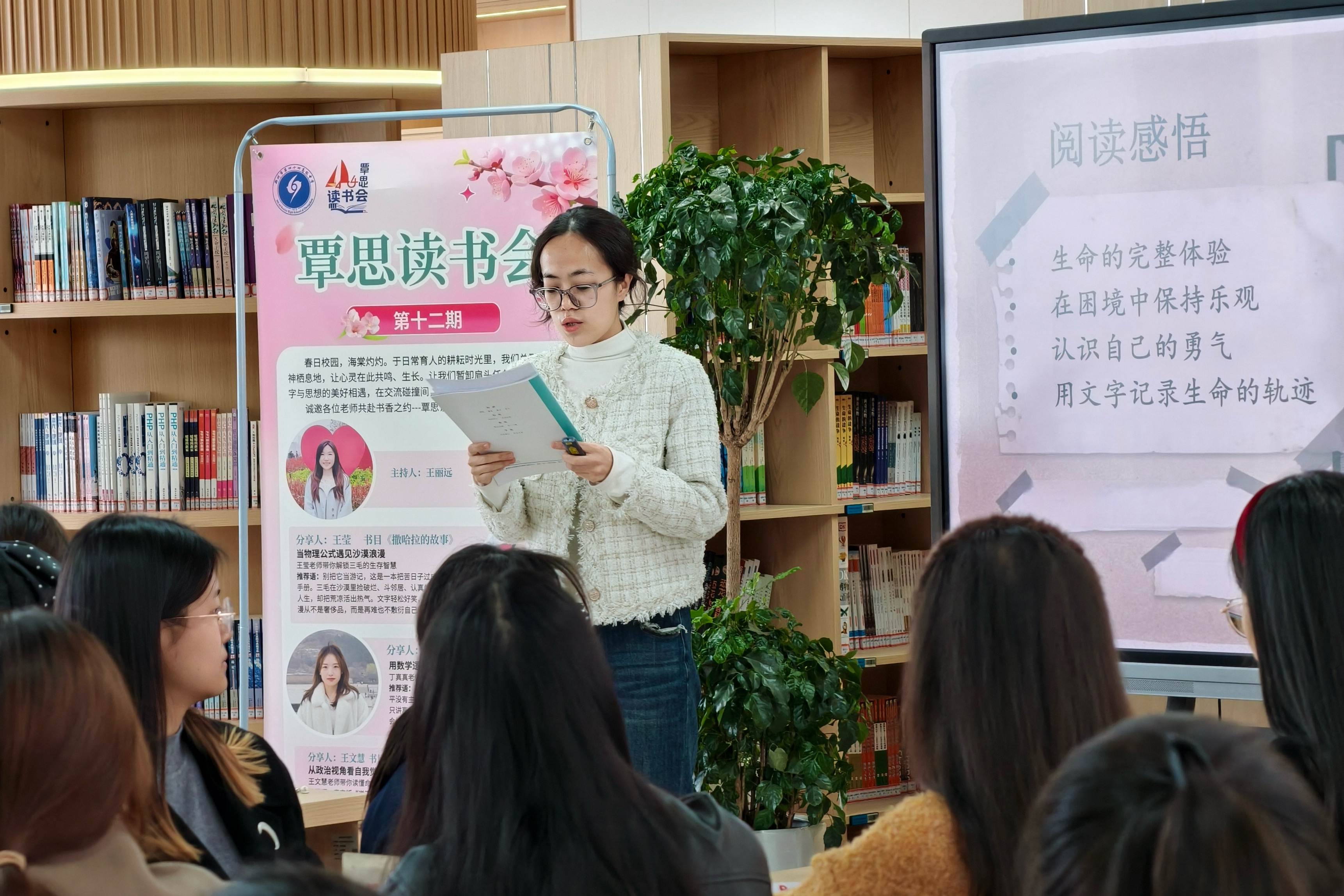 为进一步营造浓厚书香校园氛围,搭建师生思想交流、精神共长的平台,3月26日下午,郑州市第四十四高级中学“覃思读书会”第十二期活动在图书馆五楼温情启幕。在主持人王丽远老师的引导下,各位老师暂别忙碌的教学工作,与同学们一同围坐共读,共赴一场文字与思想的美好相遇,在畅谈与碰撞中,重拾对生活、对教育、对成长的滚烫热爱。
