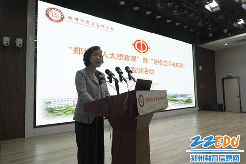 “五一”国际劳动节前举办的本场宣讲活动,由郑州市总工会主办,郑州市文教卫工会、“学习强国”郑州学习平台、郑州市商贸管理学校承办,旨在深化“大思政课”建设,依托产教融合平台培育更多有理想、敢担当、能吃苦、肯奋斗的新时代技能人才。
