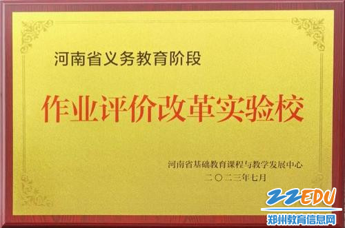 郑州市第五十七中学荣获“河南省义务教育阶段作业评价改革实验校”称号