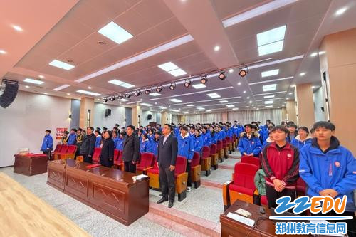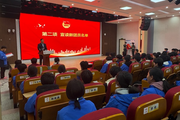 为传承五四精神,筑牢青年信仰,12月25日,郑州市商贸管理学校在报告厅举行2025年新团员入团仪式。学校党委书记马越雁、纪委书记王景义、副校长刘诗鹏、团委书记李拢拢等校领导,以及新发展团员、优秀团员代表共300人共同见证这一庄严时刻。