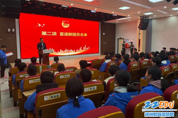 郑州市商贸管理学校团委书记李拢拢宣读新团员名单