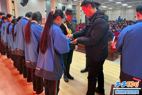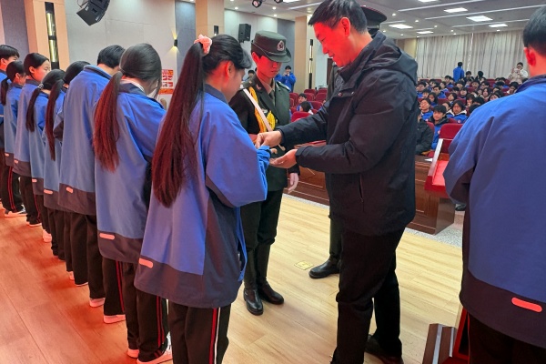 随后,学校纪委书记王景义、副校长刘诗鹏分别为两批新团员代表颁发团徽徽章与团员证。熠熠生辉的团徽徽章象征着荣誉与使命,鲜红的团员证承载着责任与担当,新团员们双手接过团徽徽章与团员证,眼中满是坚定与自豪。