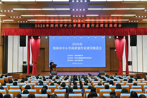 (本网讯)为深入贯彻落实《教育强国建设规划纲要(2024-2035年)》和《教育部办公厅关于进一步加强中小学日常考试管理的通知》精神,聚焦“双减”背景下作业建设与考试管理,推动基础教育质量持续提升,1月22日上午,2026年郑州市中小学高质量作业建设推进会在金水区优胜路小学孟源校区召开。