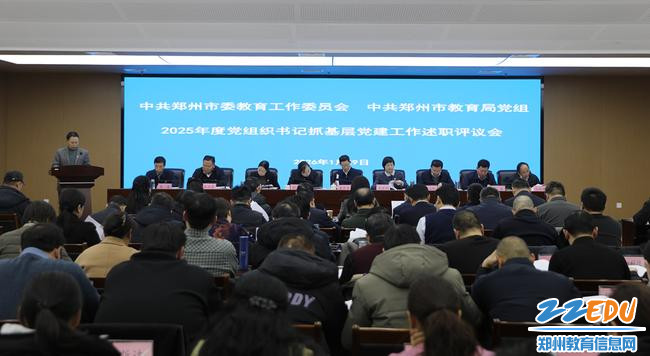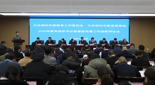 1月29日,郑州市委教育工委、郑州市教育局党组召开2025年度党组织书记抓基层党建工作述职评议会,深入学习贯彻习近平总书记关于党的建设的重要思想,全面贯彻落实新时代党的建设总要求,认真落实省委、市委关于抓好基层党建工作的部署要求,全面推进全市教育系统党建工作。郑州市委组织部一级调研员史书喜及组织三处相关同志到会指导;郑州市委教育工委常务副书记,市教育局党组书记、局长王丽娟主持会议并讲话;市教育局领导程心刚、孟杰、李正、张卫星、李雷等出席会议。