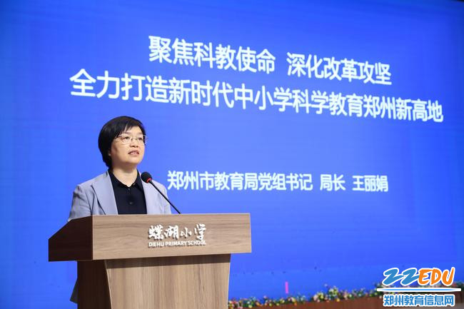 郑州市教育局党组书记、局长王丽娟以《聚焦科教使命 深化改革攻坚 全力打造新时代中小学科学教育郑州新高地》为题发表讲话。她深刻阐述了为什么要全力推进中小学科学教育,这是习近平总书记的嘱托,事关国家长远发展,是国家的战略部署,是践行五育并举的关键路径。她肯定了郑州市中小学科学教育取得的成绩,呈现出根基夯实、格局初显、成效喜人的良好态势。同时,她也直面资源配置不均衡、师资队伍不充分、育人体系不衔接等问题,要求以刀刃向内的勇气攻坚克难,为今后一个时期抓好科学教育工作指明了方向和发力点。