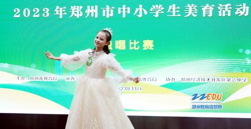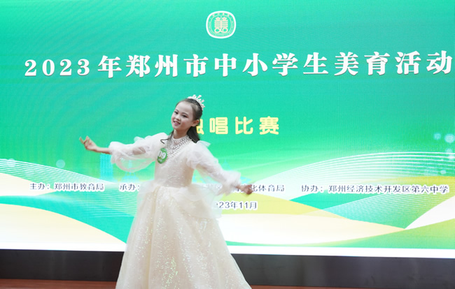 11月11日-12日,由郑州市教育局主办,郑州经开区教文体局承办、主题为“育美立新人 逐梦新时代”的2023年郑州市中小学生美育活动艺术表演类(独唱、独奏、独舞、独诵项目)现场比赛在郑州经开区第六中学举行。