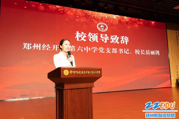 郑州经开区第六中学党支部书记、校长岳丽鸽致辞