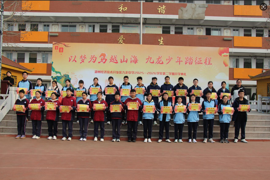 春风启新程,逐梦正当时。为凝聚奋进力量,开启新学期新篇章,3月9日上午,郑州经济技术开发区九龙中学全体师生齐聚学校操场,举行2025—2026学年第二学期开学典礼。本次典礼以“以梦为马越山海・九龙少年踏征程”为主题,仪式庄重、氛围热烈,为全体师生注入满满前行动力。