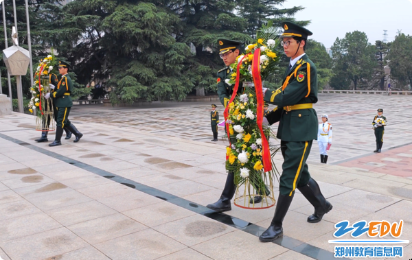 郑州南开高级中学国旗班学生向革命先烈敬献花篮