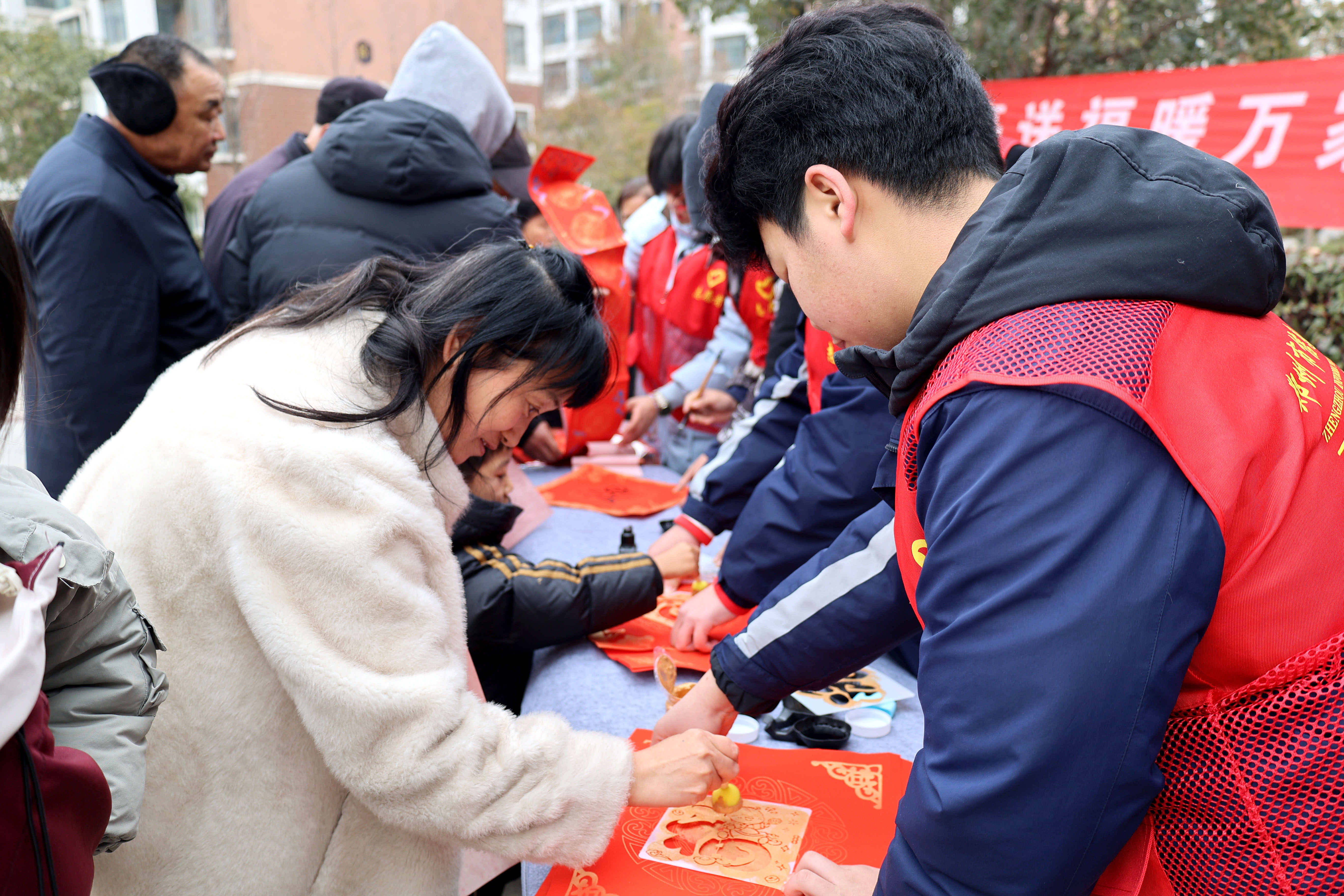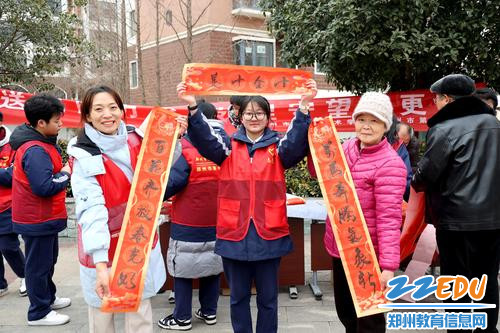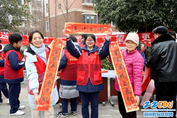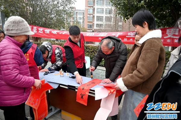 2月9日,郑州市信息技术学校(郑州市第十中学)组织二十余名师生志愿者来到郑东新区白沙镇办事处宁馨苑社区,开展“挥毫送福暖万家 邻里守望情更浓”志愿服务活动。