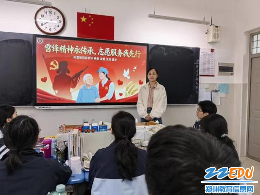 3月23日,郑州市第十四高级中学各班召开“雷锋精神永传承,志愿服务我先行”主题班会。