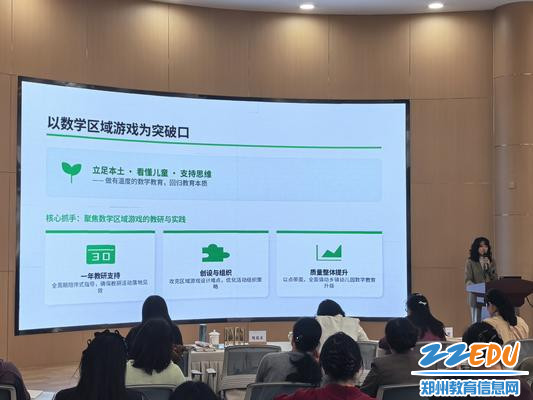 会上同步启动县域教研支持暨中牟县乡镇中心幼儿园数学领域共建共研项目。项目以“立足本土·看懂儿童·支持思维——做有温度的数学教育”为理念,通过理念学习、案例复盘、游戏视频分析、家园共育指导等方式,破解乡镇园“不会研”“家园错位”等实际问题。项目以数学区域游戏为抓手,聚焦幼儿数学核心经验,打造本土化、可操作的教学模式,切实提升乡镇幼儿园保教质量。