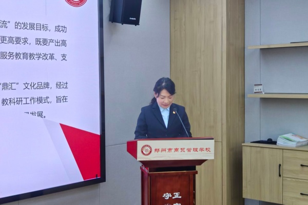 随后,郑州市商贸管理学校校长陈红霞围绕学校教科研工作做了专题汇报,从制度建设、团队培养、成果转化等方面分享了学校的经验与做法,展现了学校以科研促教学、以教学带科研的良好生态。