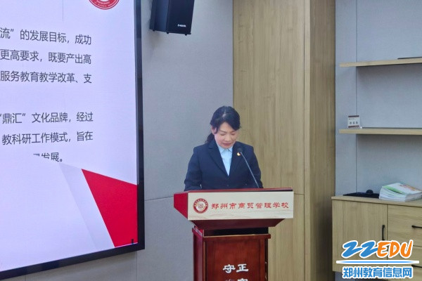 郑州市商贸管理学校校长陈红霞围绕学校教科研工作作专题汇报