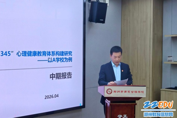 作为本次研讨的重点内容,河南省教育强省专项课题《中职学校“12345”心理健康教育体系构建研究》课题组代表、郑州市商贸管理学校教科室主任范予东汇报了课题中期推进情况,系统介绍了课题的研究框架、实施进展及阶段性成果。随后,郑州市教育科学规划与评估中心教研员张东林结合课题中期走访情况,提出了针对性的指导意见,为课题后续研究提供了有力支撑。