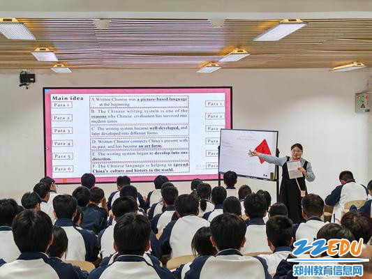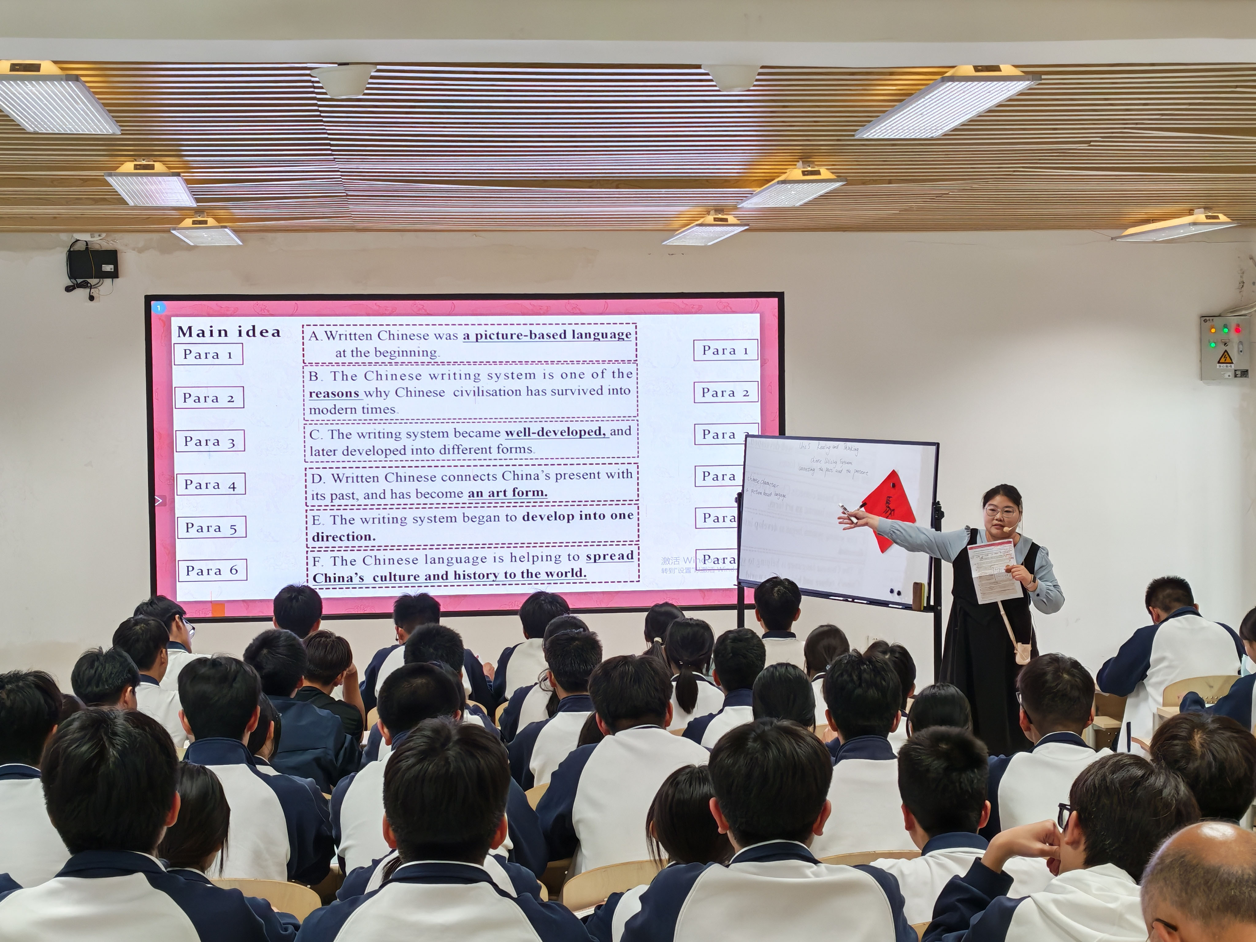 英语组陈玉秀和心理组李月皎两位教师依次进行课堂教学展示。陈玉秀授课的题目为《The Chinese Writing System: Connecting the Past and the Present》,整节课紧扣新课标要求,立足学科核心素养,精准把握学业质量标准,精心设计教学环节,课堂氛围活动;李月皎的课程《心有繁花,静待春风》从心理学角度进行精准授课,将情境教学、任务驱动、合作探究等新方法融入课堂实践,充分展现了扎实的教学功底与创新的教学思路。课堂上师生互动积极、氛围浓厚,学生参与度高,呈现出高效、优质、特色的课堂样态。课后两位老师进行了课后说课,四位老师针对课堂实施和效果进行了认真评课。