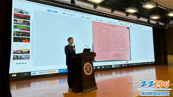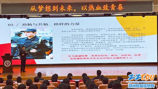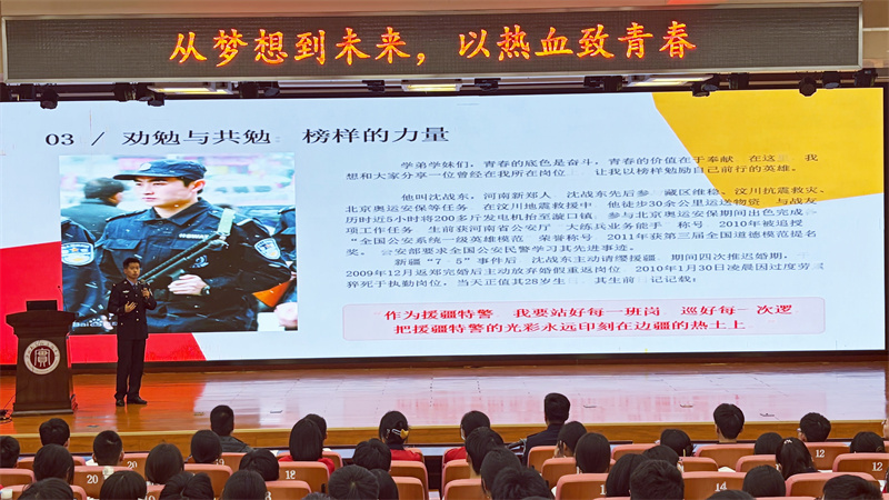 郑州市公安局特巡警支队二大队中队长杨爽给青年学子进行人生引领