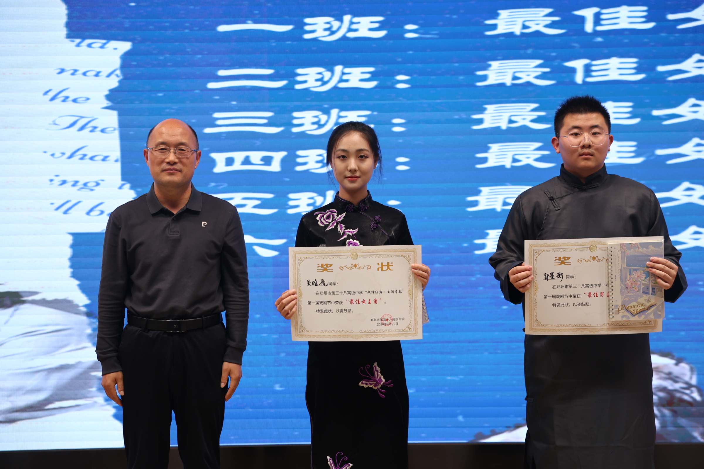 学校为最佳女主角、最佳男主角颁奖