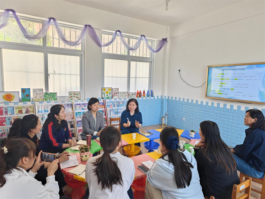指导团队深入小、中、大班,对班级区域设置及材料投放进行了全面、细致的现场诊断。针对汤阴县城关镇中心幼儿园教师在区域活动开展中的实际困惑,指导团队从区域类型的科学划分、自制材料的设计与制作、材料投放的层次性与适切性以及幼儿与材料的互动质量等方面,逐一提出了具体可操作的优化建议。指导组强调,区域活动应真正成为幼儿自主选择、自主学习、个别化探索的地方,教师要善于通过观察识别幼儿的发展需求,动态调整材料,让每一个角落都发挥教育价值。