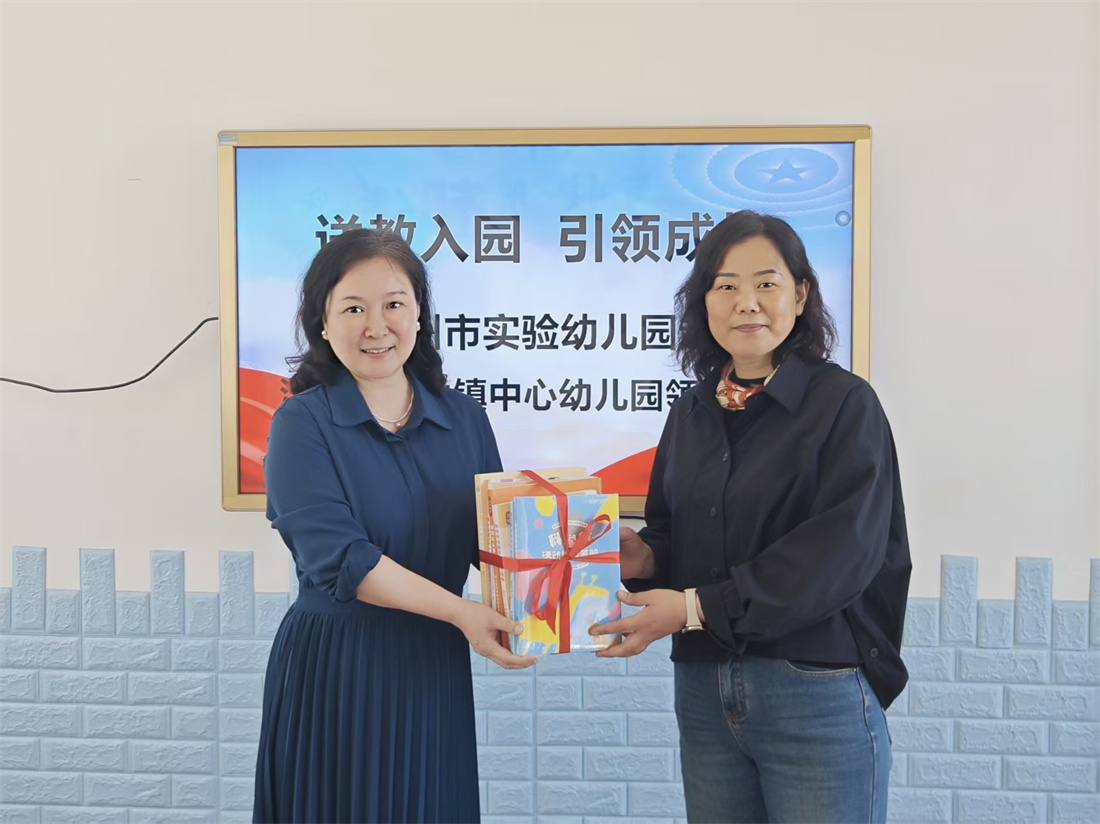 活动尾声,举行了简朴而温馨的赠书仪式。黄艳代表郑州市实验幼儿园向汤阴县城关镇中心幼儿园赠送了一批学前教育专业图书,为园所教师专业成长提供了丰富的资源支持,传递了对学前教育事业共同发展的殷切期望。汤阴县城关镇中心幼儿园园长李志红作总结发言,对黄艳一行的精准帮扶表示衷心感谢,她表示,此次入园指导干货满满、针对性强,有效破解了园所在教育教学中的难点问题,全体教师将认真梳理所学经验,把帮扶成果转化为推动园所发展的实际行动,不断提升教育教学质量。