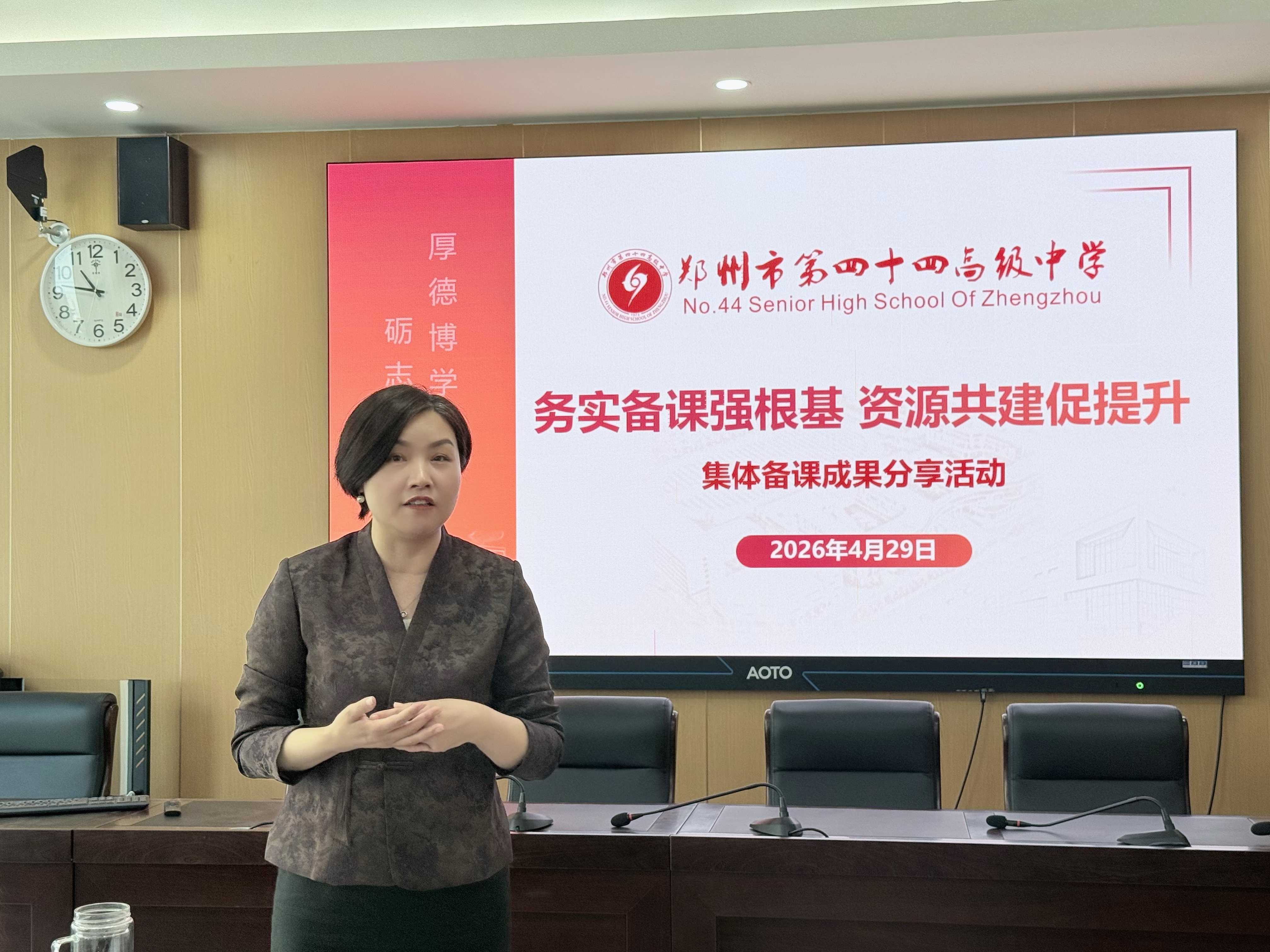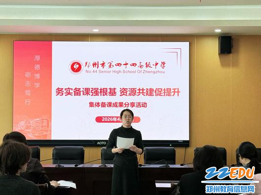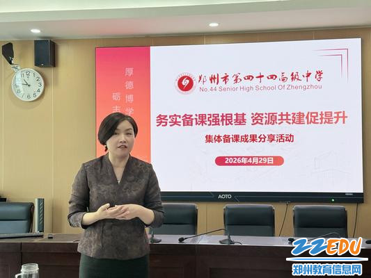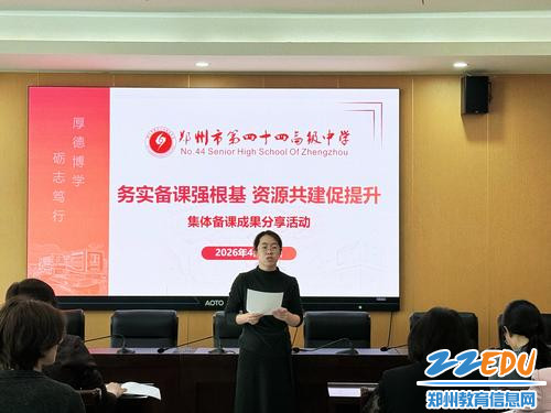 为推动集体备课规范化、精细化、长效化发展,助力教师专业成长与教学品质提升,4月29日,郑州市第四十四高级中学举办“务实备课强根基,资源共建促提升”集体备课成果分享活动。本次活动聚焦集体备课成果展示、备课方法交流、学科资源库搭建,立足实操实效,推广优秀备课经验,淬炼全校备课品质。