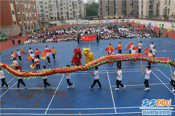 接下来是精彩纷呈的入场式。伴随着激昂的旋律,教师团队、各班级方阵学生队员身着整齐的服装、手拿新颖的道具、高喊嘹亮的口号依次入场,红旗操、扇子舞、拉丁舞、舞龙舞狮等精彩节目纷纷亮相。别出心裁、精彩绝伦的班级文化建设成果创意展,令全场师生掌声阵阵、欢呼不断,既展示了班级精神风貌,又表达着对这场体育盛会的期待与热爱,充分体现了学校“让每一个生命都灿烂”的办学理念。