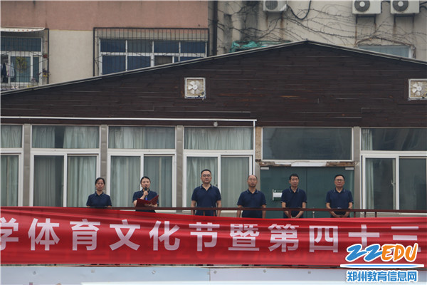 郑州市第三十四中学副校长王远荣致开幕辞。她讲到,作为一名合格的郑州34中学子,必然是一个全面发展、自我完善的学生,是一个无论在考场上,还是在运动场上都能勇攀高峰的学生。希望同学们在运动场上积极发扬奥运精神,向着更高、更快、更强的目标而努力,尽情体验竞赛的魅力,充分展示昂扬向上的青春活力、奋发进取的精神风貌和全面发展的优良素质!
